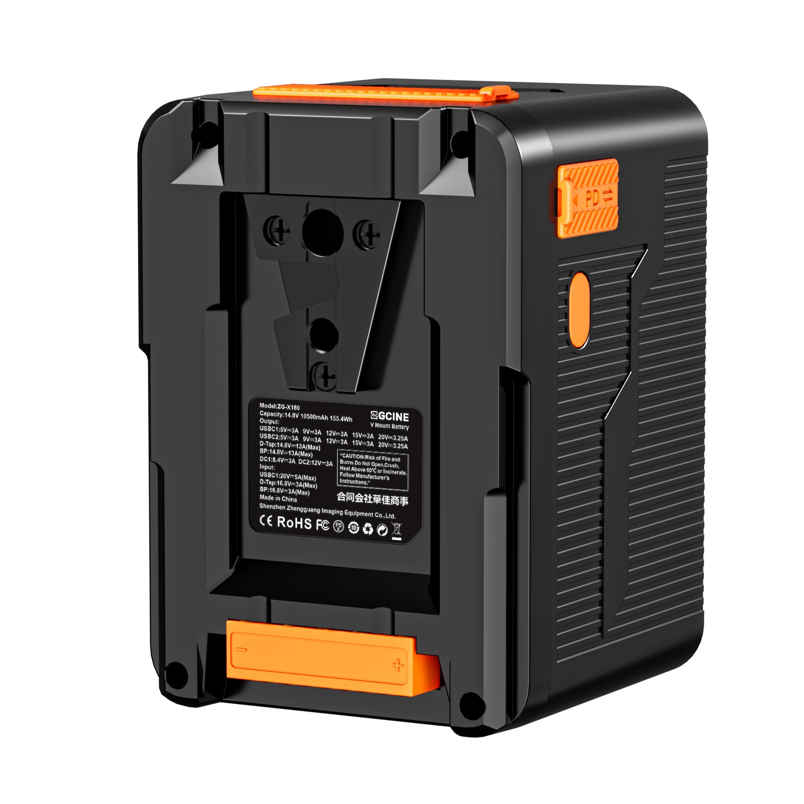 Bateria ZGCINE X160 V-Mount, 10500mAh, 156Wh/14,8V mini V-Mount, suporte para carregador rápido bidirecional PD USB-C de 100W, com PD USB-C duplo, D-TAP, porta CC dupla, tela IPS de 1,3 polegadas, para câmera, filmadora, monitor, cineasta