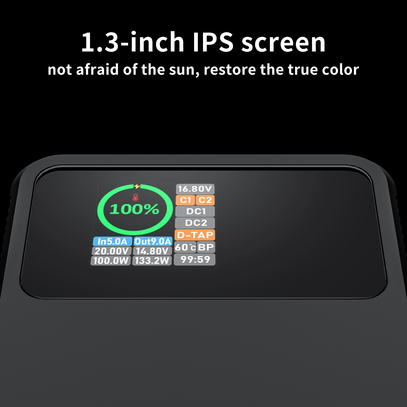 Tela IPS de 1,3 polegadas: Com identificação abrangente das portas, a tela oferece uma visão clara da corrente, voltagem, energia total, tempo restante, temperatura e outras informações essenciais do seu dispositivo. Carregamento Rápido PD: A bateria X160 V-mount suporta carregamento rápido através de sua entrada USB-C PD de 100 W. Ao utilizar um carregador de 100 W, ela pode ser totalmente carregada em apenas 2,5 horas, proporcionando vantagens significativas de economia de tempo.