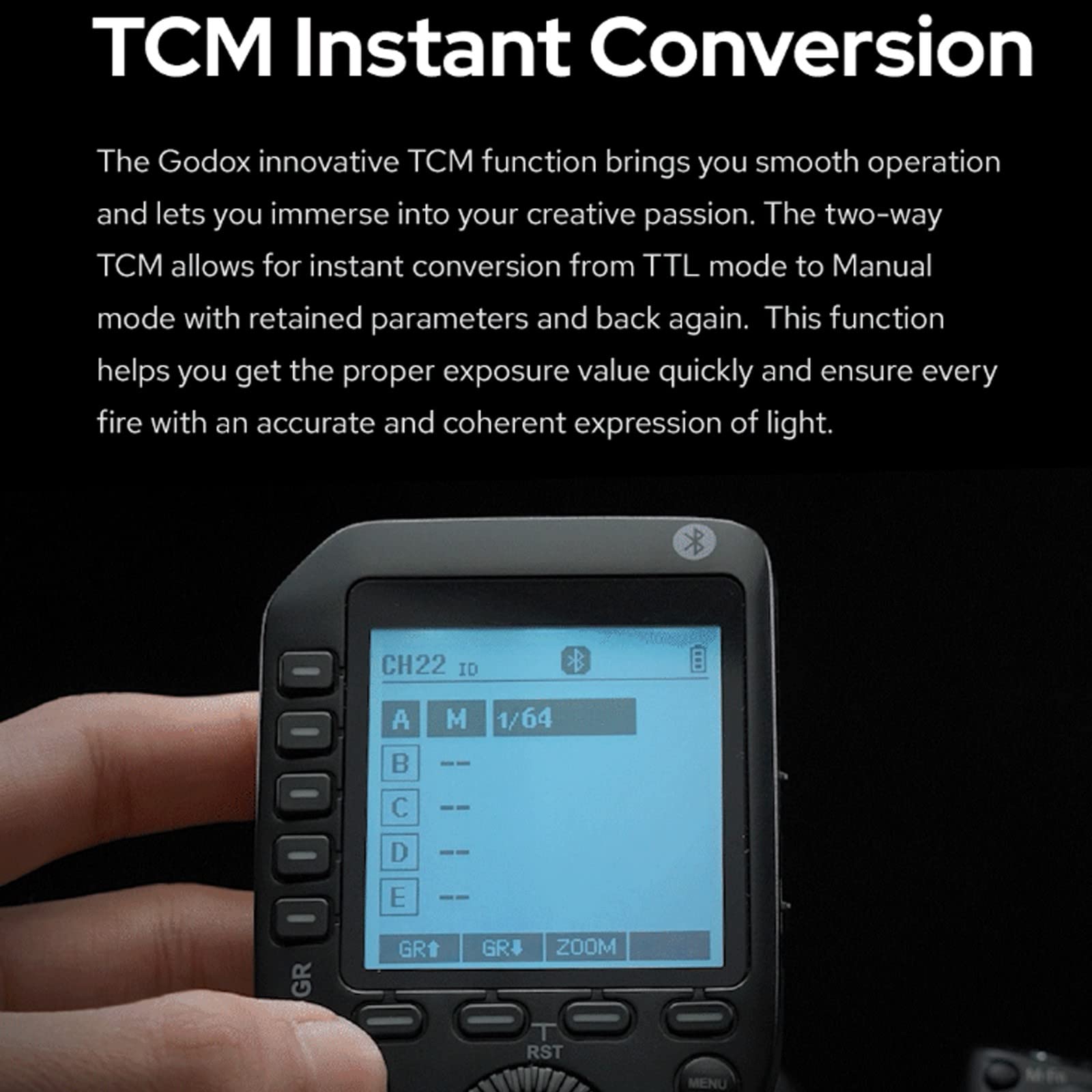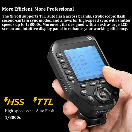 O Godox XProII possui um total de 16 grupos e 32 canais, de 01 a 99 configurações de ID sem fio, além de fácil controle e disparo sem fio. A nova função SCAN permite encontrar rapidamente o canal aplicável em múltiplas cenas de flash, melhorando sua eficiência no trabalho.