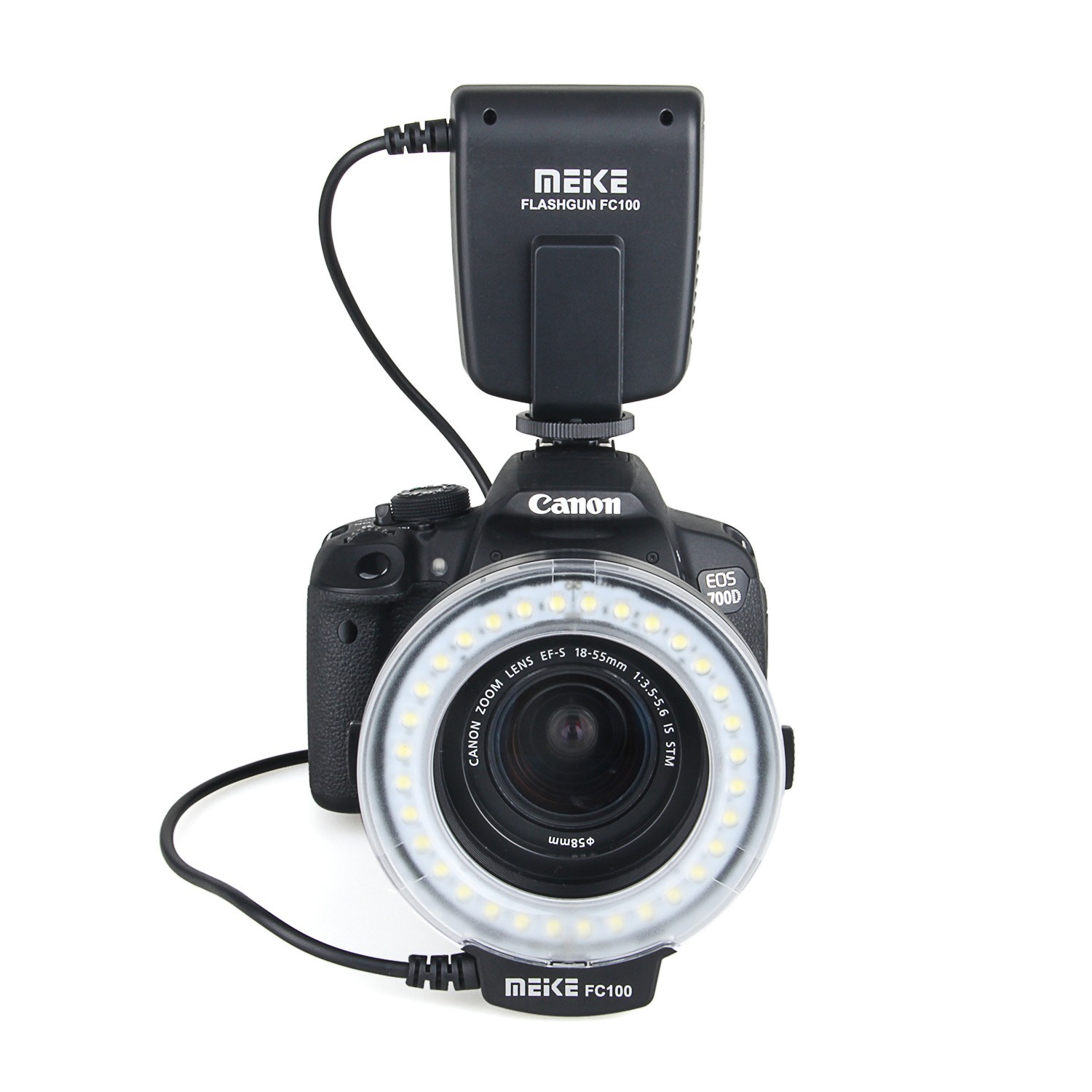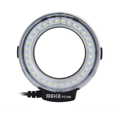 O Meike FC-100 é um flash macro tipo anel projetado especialmente para close-ups, fotografia médica, científica, forense, etc. Construído com 32 LEDs de alta intensidade, este flash macro tipo anel Meike ilumina o objeto, independentemente da luminosidade. Você pode usar este flash LED como flash instantâneo ou para fotos com luz ininterrupta, o que é necessário principalmente em fotografia de close-up. Equipado com sistema de pré-flash, este flash macro tipo anel Meike permite a iluminação total ou parcial, dependendo da situação de iluminação.