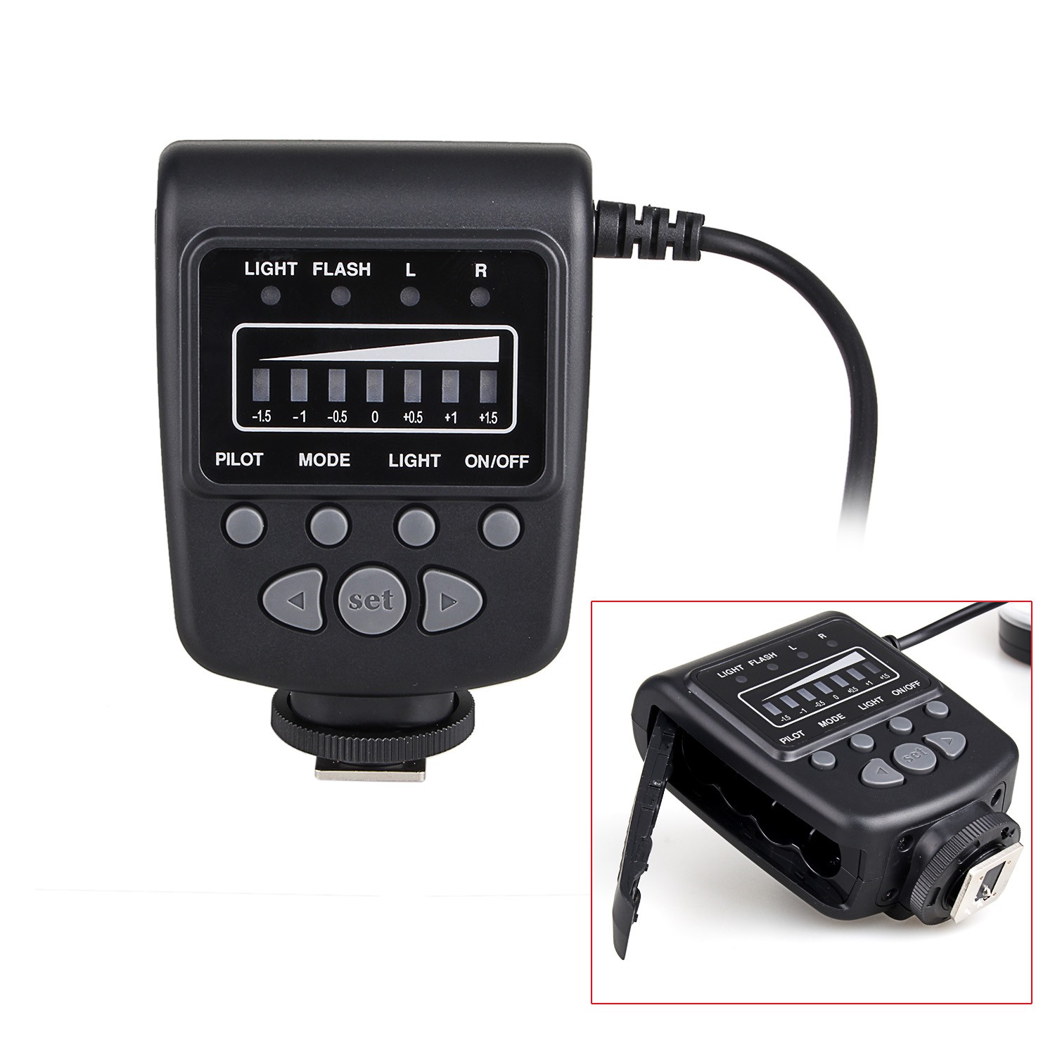 Quatro modos de operação: Modo de luz, Modo de flash, Modo L (metade esquerda do flash anular), Modo R (metade direita do flash anular).