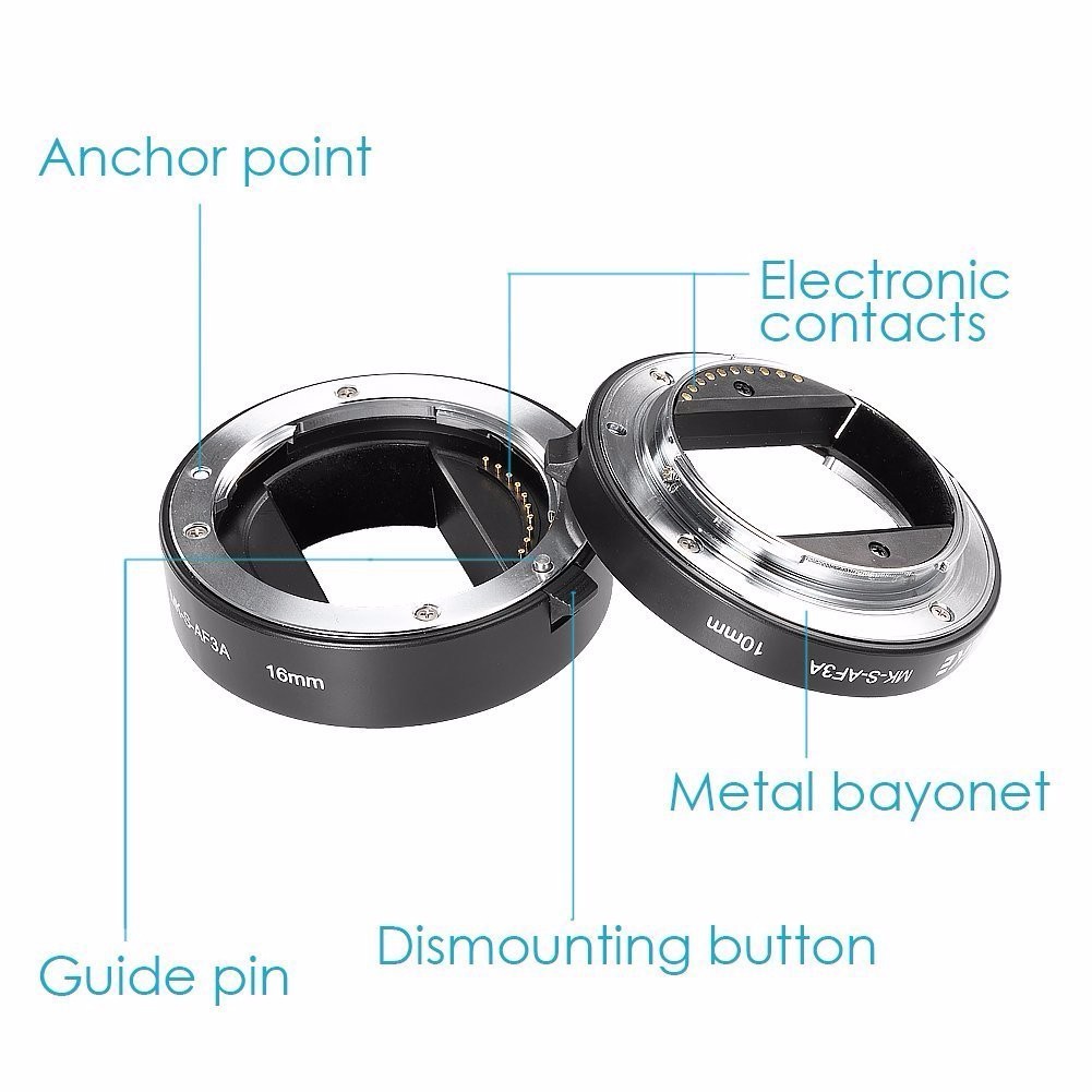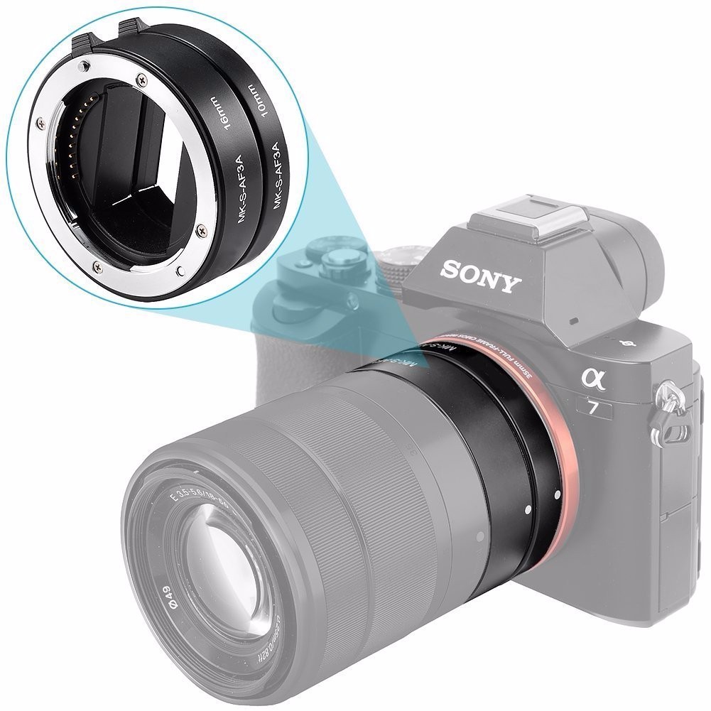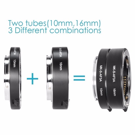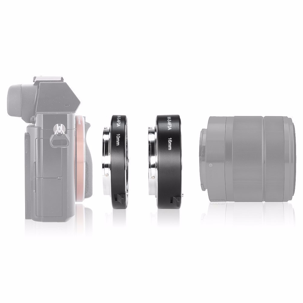 Meike MK-S-AF3-ATubo de extensão automático de metal, anel adaptador para disparo próximo (10 mm + 16 mm) para Sony E-Mount