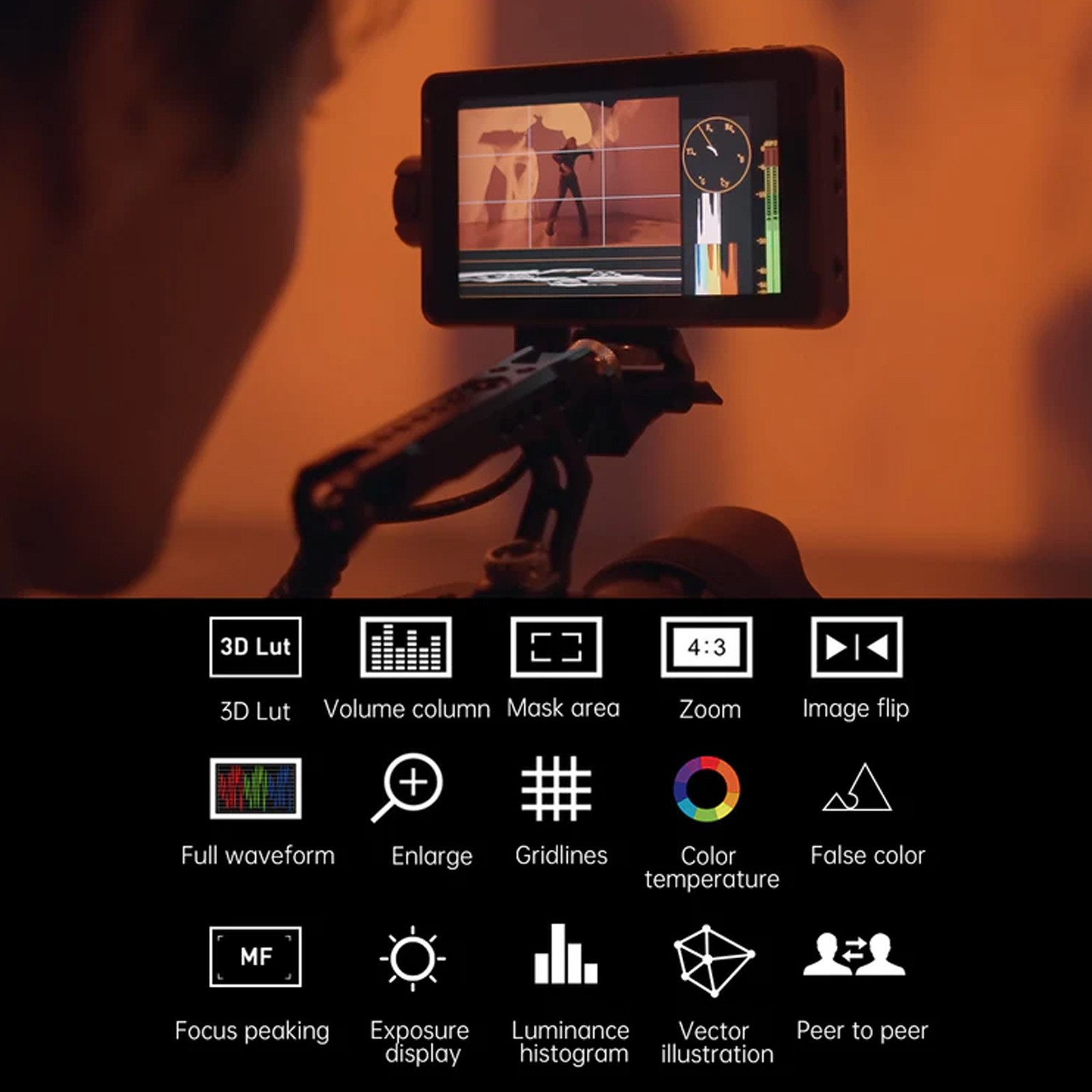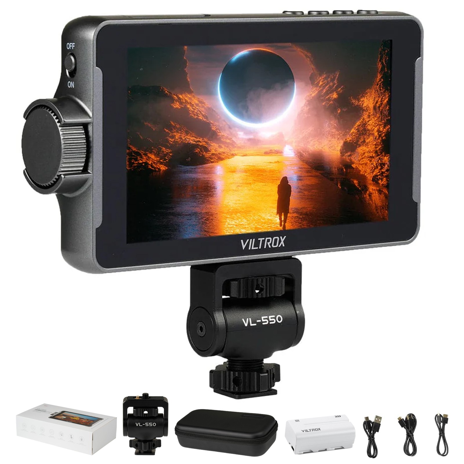 Monitor de campo para câmera DSLR com tela sensível ao toque VILTROX DC-550 de 5,5", alto brilho de 1200 nits, entrada e saída HDMI 4K, com bateria/proteção solar, LUT 3D, assistência de foco, forma de onda para câmeras DSLR Nikon Sony Canon