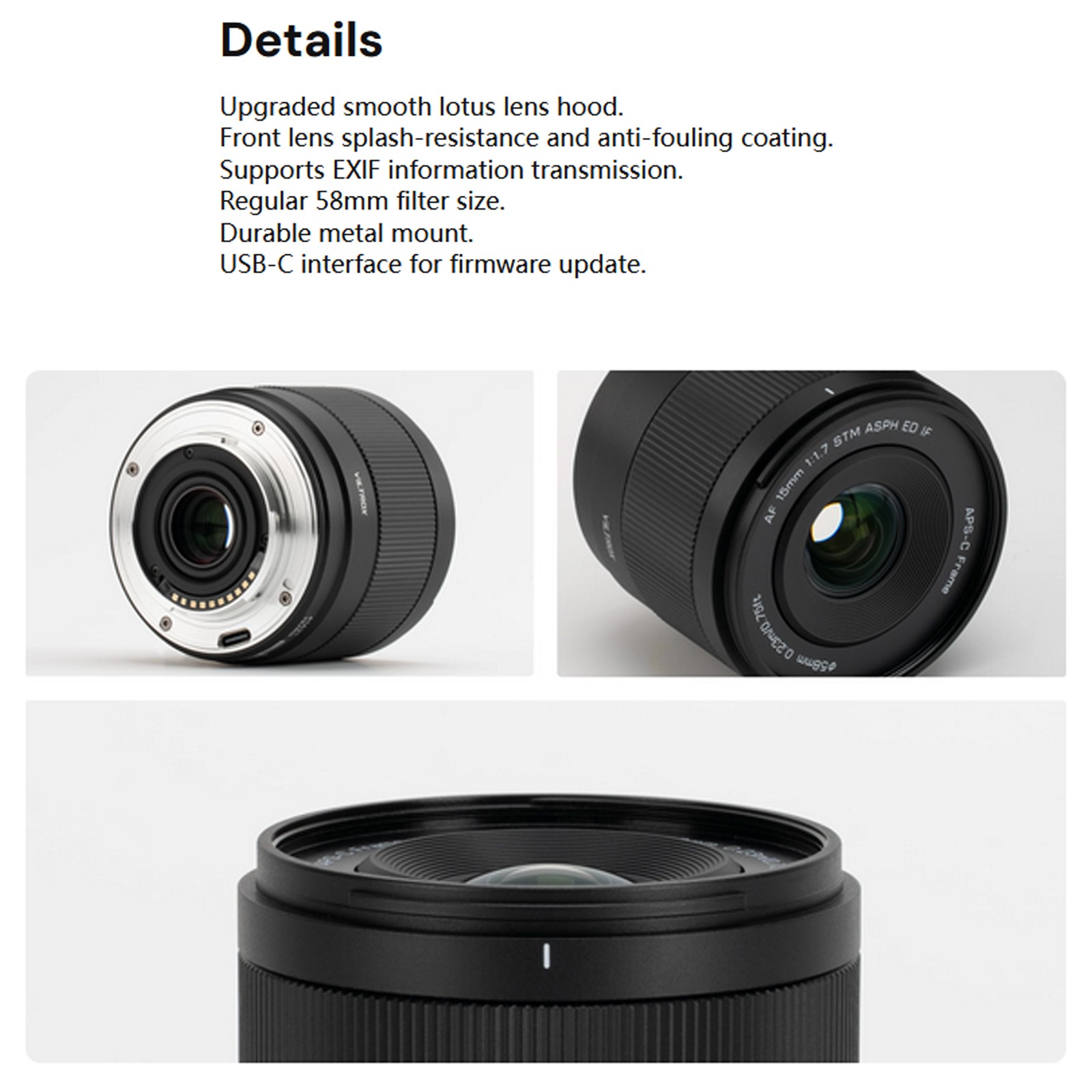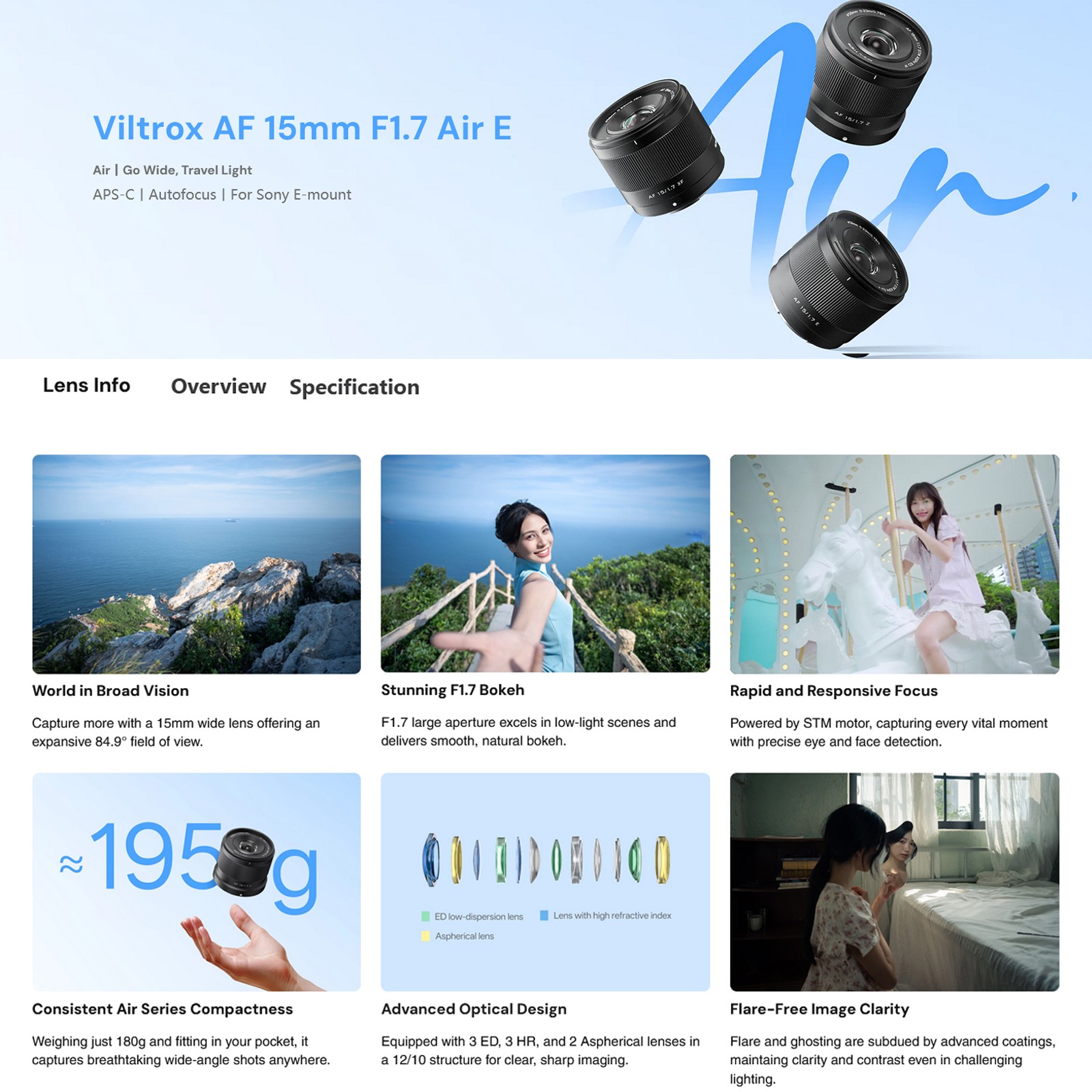Lente Viltrox AF 15mm F1.7 Air APS-C para Sony E-Mount